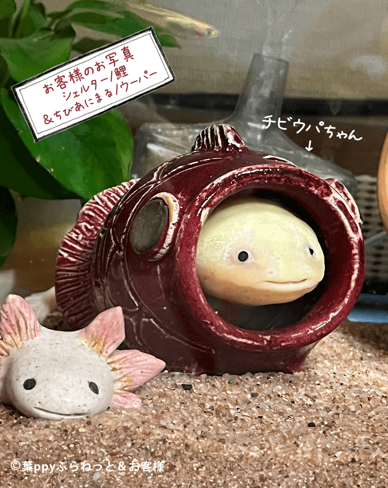 間口のサイズや横幅をウーパールーパーの入りやすい形にこだわったもの、お客様からの完全オーダーで作成したものもございます。